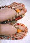 | アタクシの真夏の味方・・・・青い絵の具と麦わら帽子と買い物かご。 そして友達の手作り!!の布わらじ!(最高なのよ、これが。涼しくて刺激?があって) |